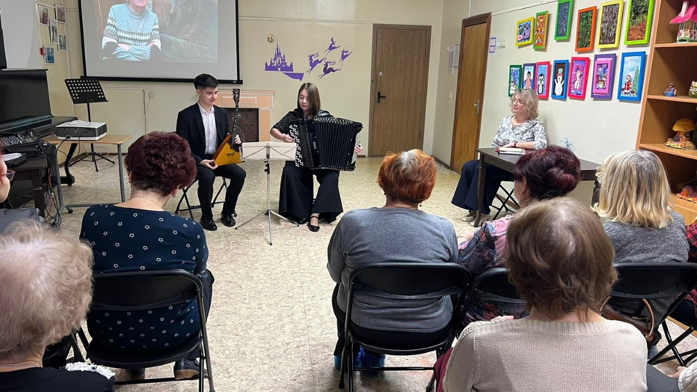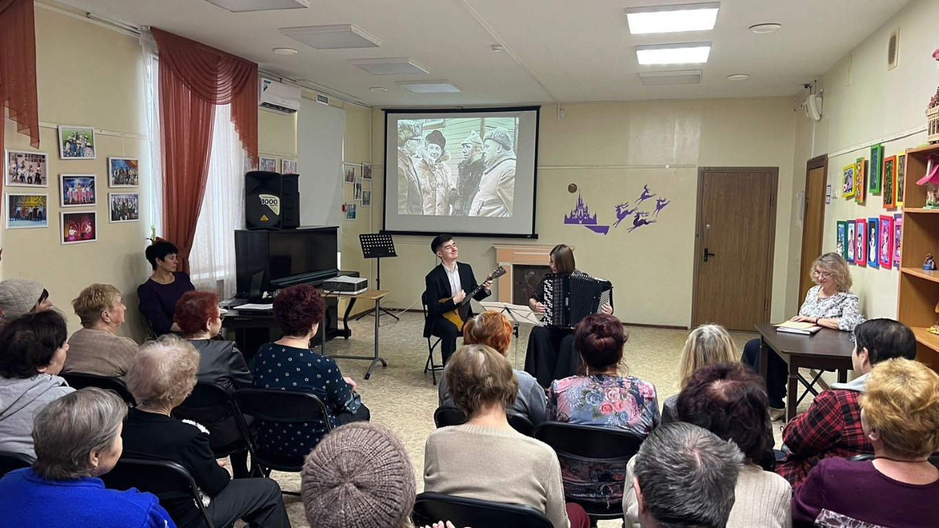 2 февраля артисты Коломенской филармонии Мария Павлова и Виктор Новиков выступили в комплексном центре социального обслуживания и реабилитации "Коломенский". Программа была посвящена творчеству режиссера Леонида Гайдая.
