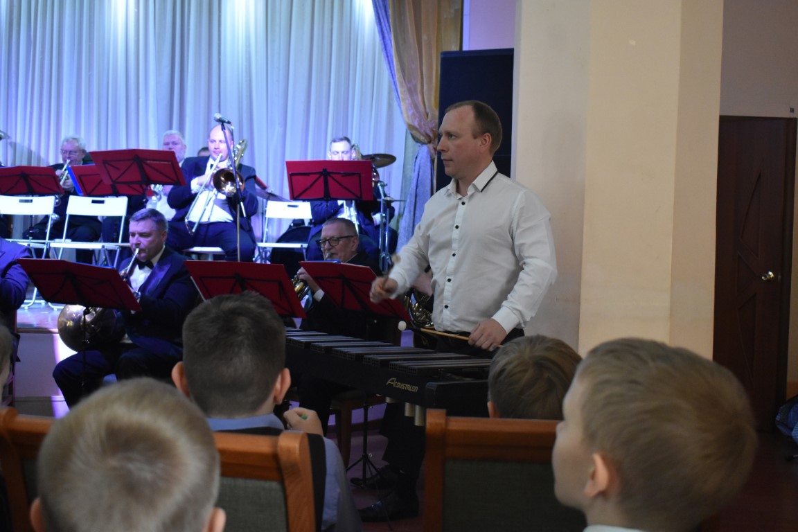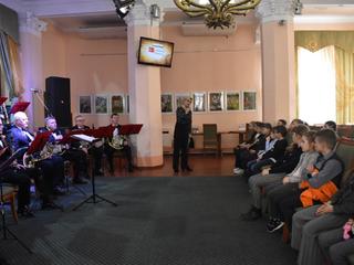 14 апреля состоялась музыкально-познавательная программа "Знакомьтесь - духовой оркестр". Ребята из гимназии № 2 "Квантор" узнали много нового и интересного о духовых инструментах, об особенностях игры на них и какое место они занимают в оркестре. По окончании встречи юным зрителям посчастливилось даже подирижировать оркестром. Мастер-класс по дирижированию провёл заслуженный работник культуры РФ, главный дирижер Коломенской филармонии Александр Пономарев.