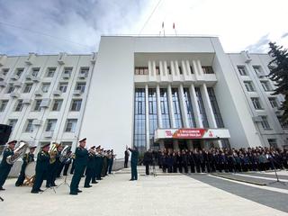 7 мая в канун Великого праздника Дня Победы, состоялась церемония подъема Государственного флага Российской Федерации и копии Знамени Победы.