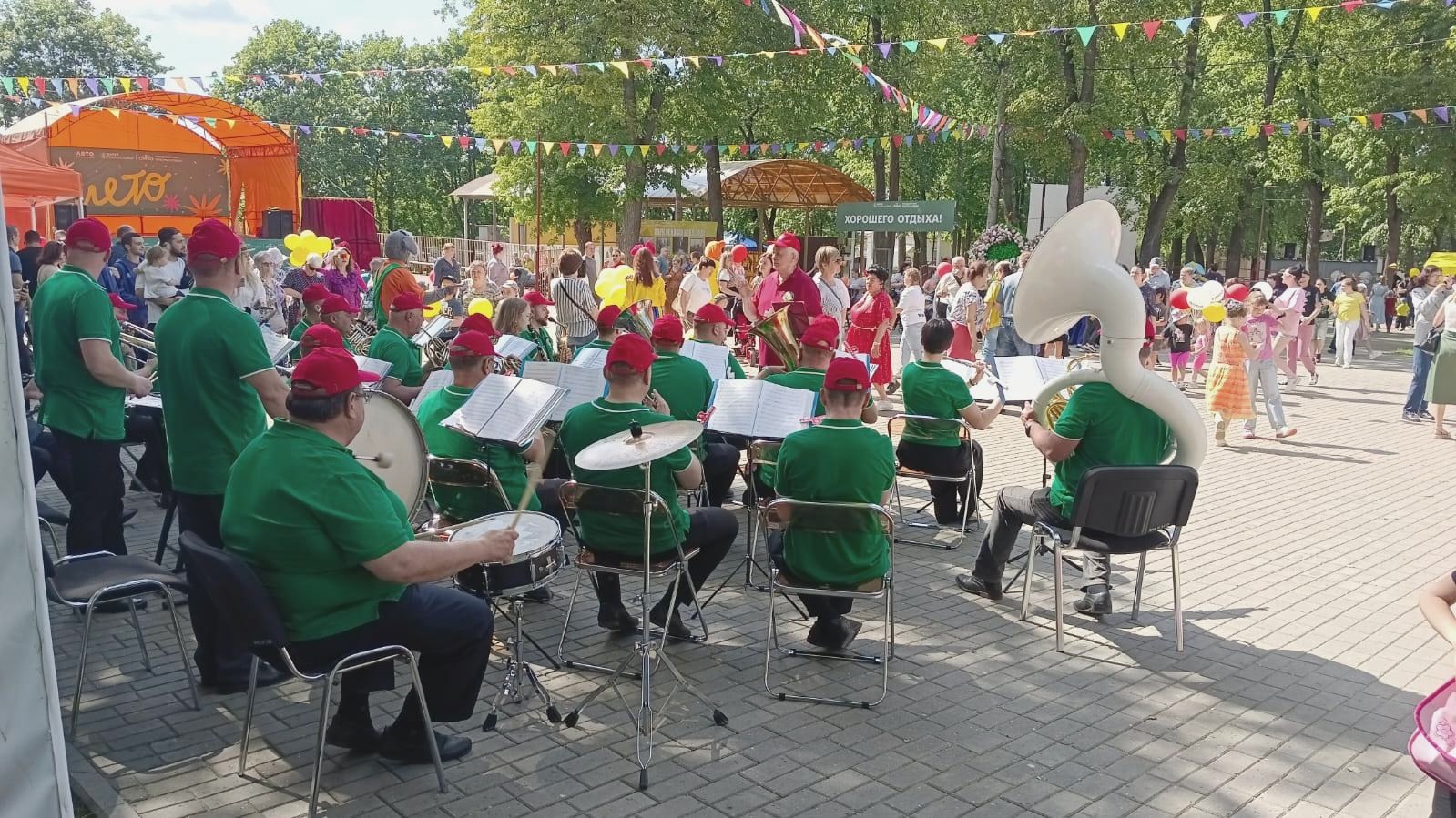 Оркестр исполнил для многочисленных зрителей разнообразную концертную программу, включающую в себя популярные мелодии из советских кинофильмов, торжественные марши и широко известные музыкальные композиции. Для юных гостей праздника оркестр подготовил сюрприз – исполнил мелодии из любимых советских мультфильмов.