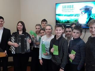 1 февраля в Учебно-методическом центре «Коломна» состоялась Литературная программа, посвященная 140-летию П.П. Бажова «Уральский мастер сказов» в рамках Музыкально-образовательного проекта социального партнерства МБУК «Коломенская филармония» и МБУ ДПО УМЦ «Коломна» по художественно-эстетическому воспитанию школьников «Читаем с музыкой». Мероприятие подготовила и провела библиотекарь УМЦ «Коломна» Курякова Елена Сергеевна. Артисты Коломенской филармонии Мария Павлова и Виктор Новиков подарили ребятам замечательные музыкальные произведения, созвучные теме мероприятия.