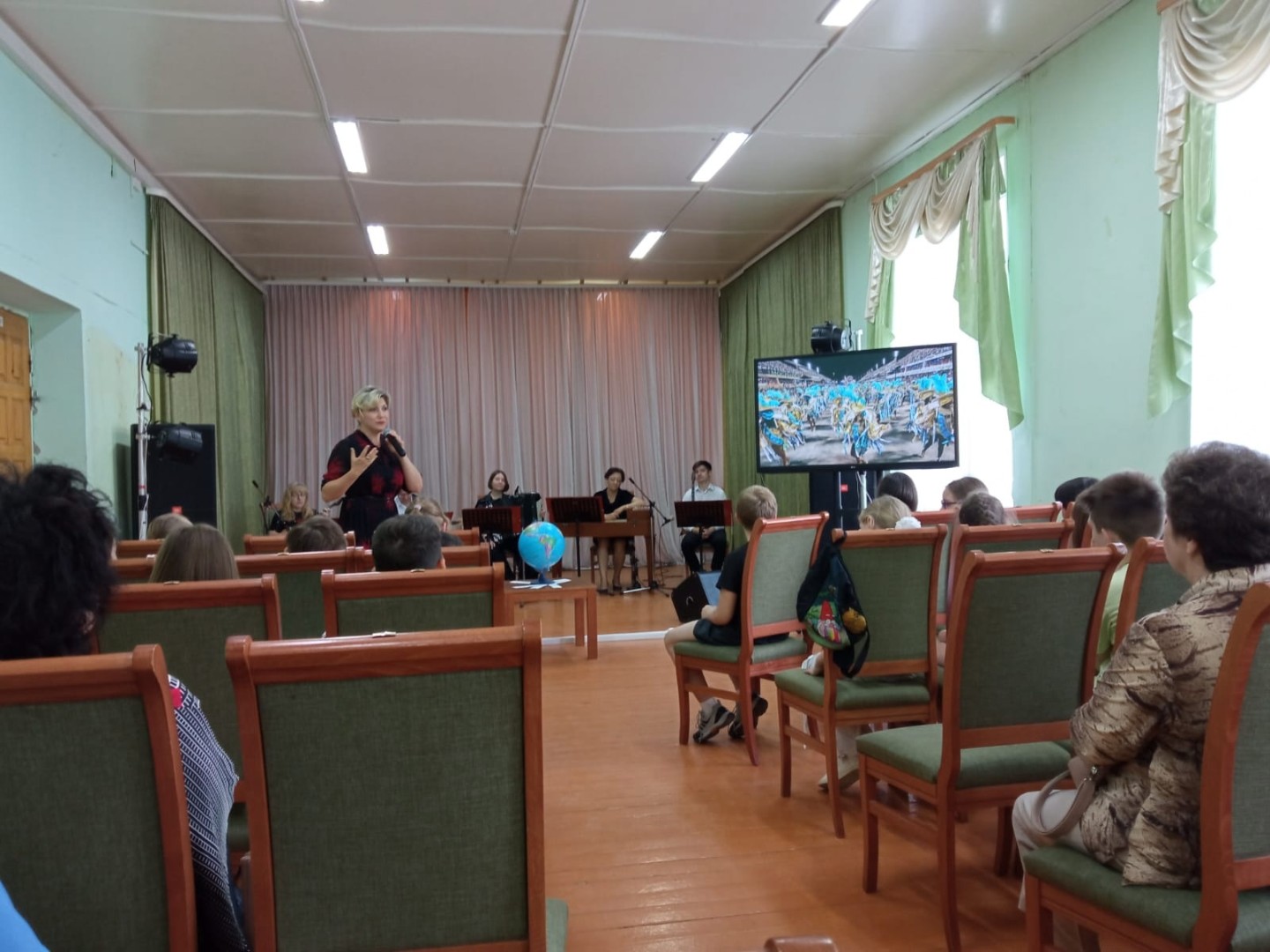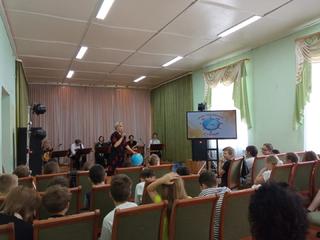 6 июня ребята из гимназии №2 "Квантор" посетили музыкально-познавательную программу "Урок географии в танце" в исполнении ансамбля народных инструментов "Музыкальный экспресс". Юные зрители совершили музыкальное путешествие по странам и континентам. Музыка помогала ребятам лучше понять и почувствовать культуру той или иной страны.