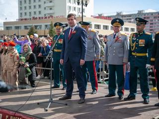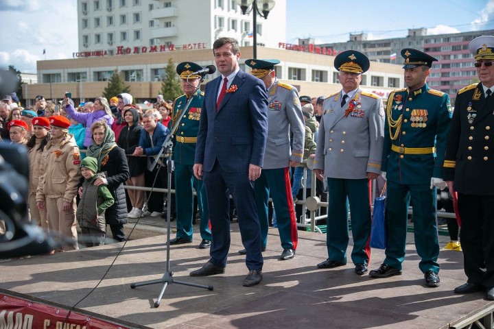 «Наш город неразрывно связан с артиллерией, с ракетостроением. Во времена Великой Отечественной войны в Коломне было сформировано более 40 артиллерийских частей, которые вместе со всей страной ковали Победу. Дорогие курсанты и жители, поздравляю вас с великим праздником Победы. Хочу пожелать всем военнослужащим счастья и успехов в учении. С Днем Победы!».