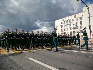 В День Победы по главной площади Коломны торжественным маршем прошел парадный расчет Михайловской военной артиллерийской академии. Всего несколько часов назад эти курсанты принимали участие в параде на Красной площади Москвы.