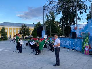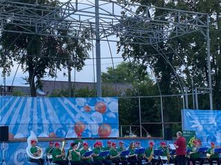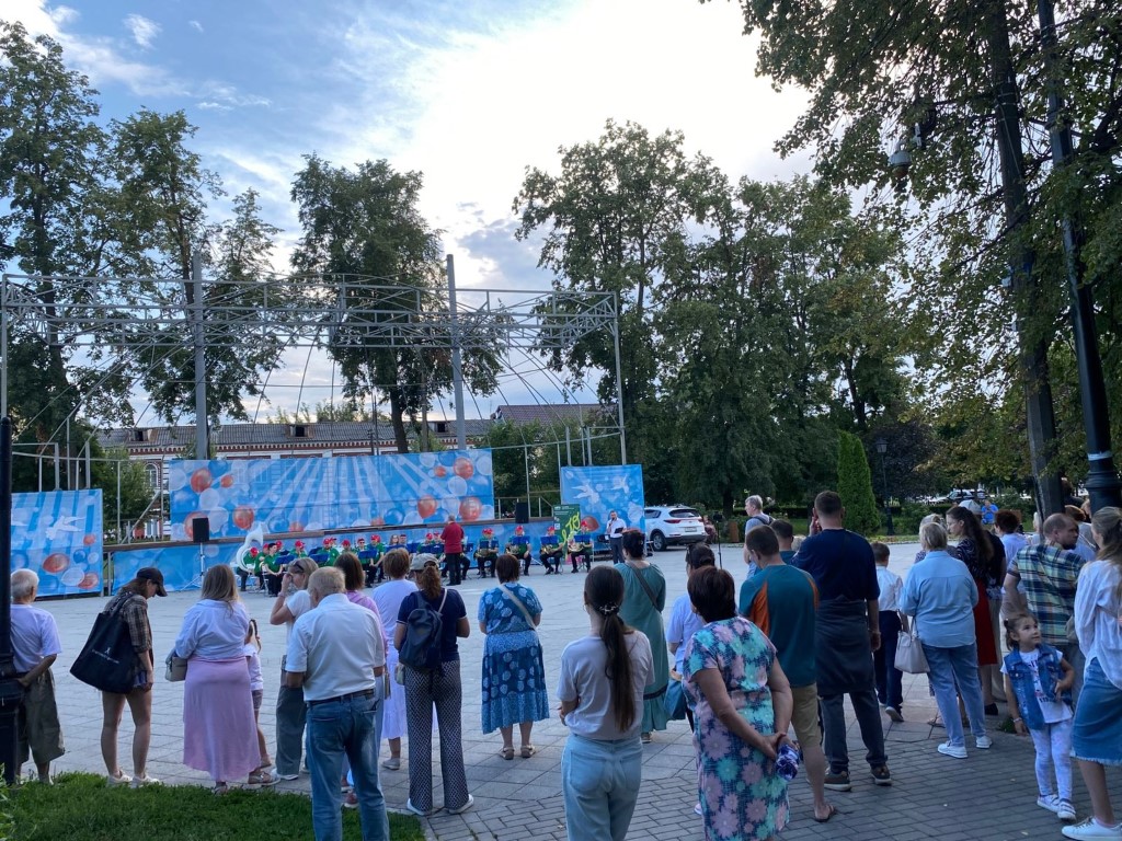 16 июля центром притяжения в сквере им. В.А. Зайцева стала уютная сцена, а всё потому, что для гостей сквера выступил Духовой оркестр Коломенской филармонии, Главный дирижёр заслуженный работник культуры РФ Александр Пономарёв. Солист оркестра ученик академии хорового искусства имени В.С. Попова Платон Дегтярёв.