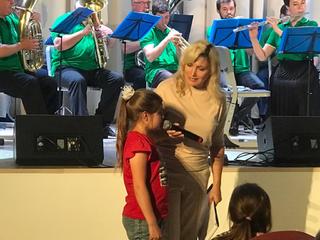 3 июля в новом здании школы 15 состоялась музыкально-познавательная программа "Знакомьтесь - духовой оркестр". Ребята из летнего лагеря узнали много нового и интересного о духовых инструментах, об особенностях игры на них и какое место они занимают в оркестре. По окончании встречи юным зрителям посчастливилось даже подирижировать оркестром. Мастер-класс по дирижированию провёл заслуженный работник культуры РФ, главный дирижер Коломенской филармонии Александр Пономарев. В конце музыкальной встречи ребята с удовольствием угадывали песни из любимых мультфильмов и пели все вместе.