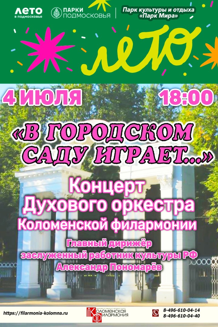 Коломенская филармония приглашает вас на серию концертов, которые пройдут на открытых площадках нашего города. Творческие коллективы филармонии с радостью представят свою программу, исполнив любимые мелодии и популярные песни в романтичной атмосфере. Приглашаем вас насладиться искусством в уютной обстановке открытых пространств.