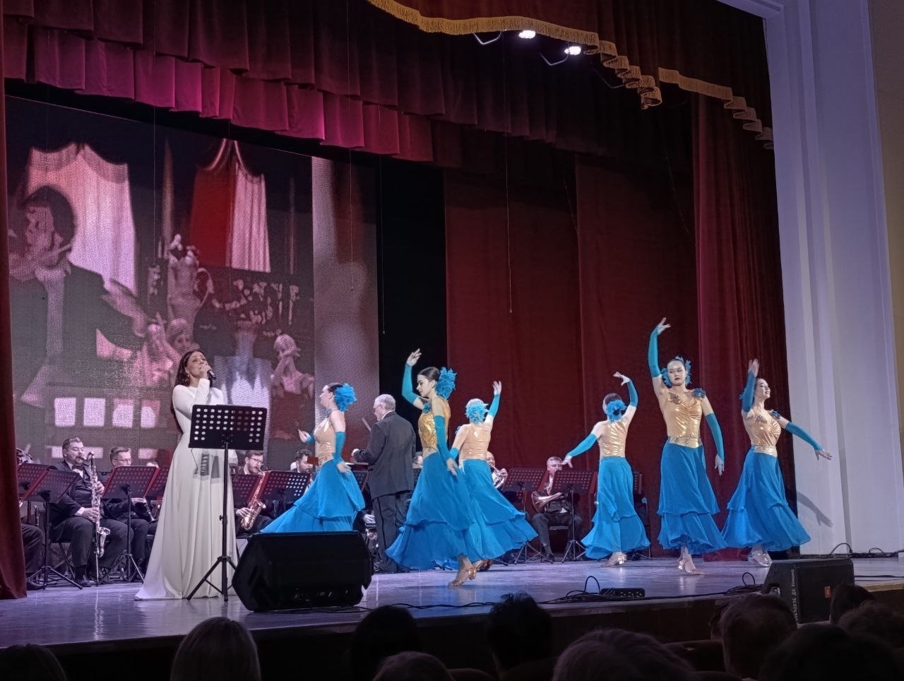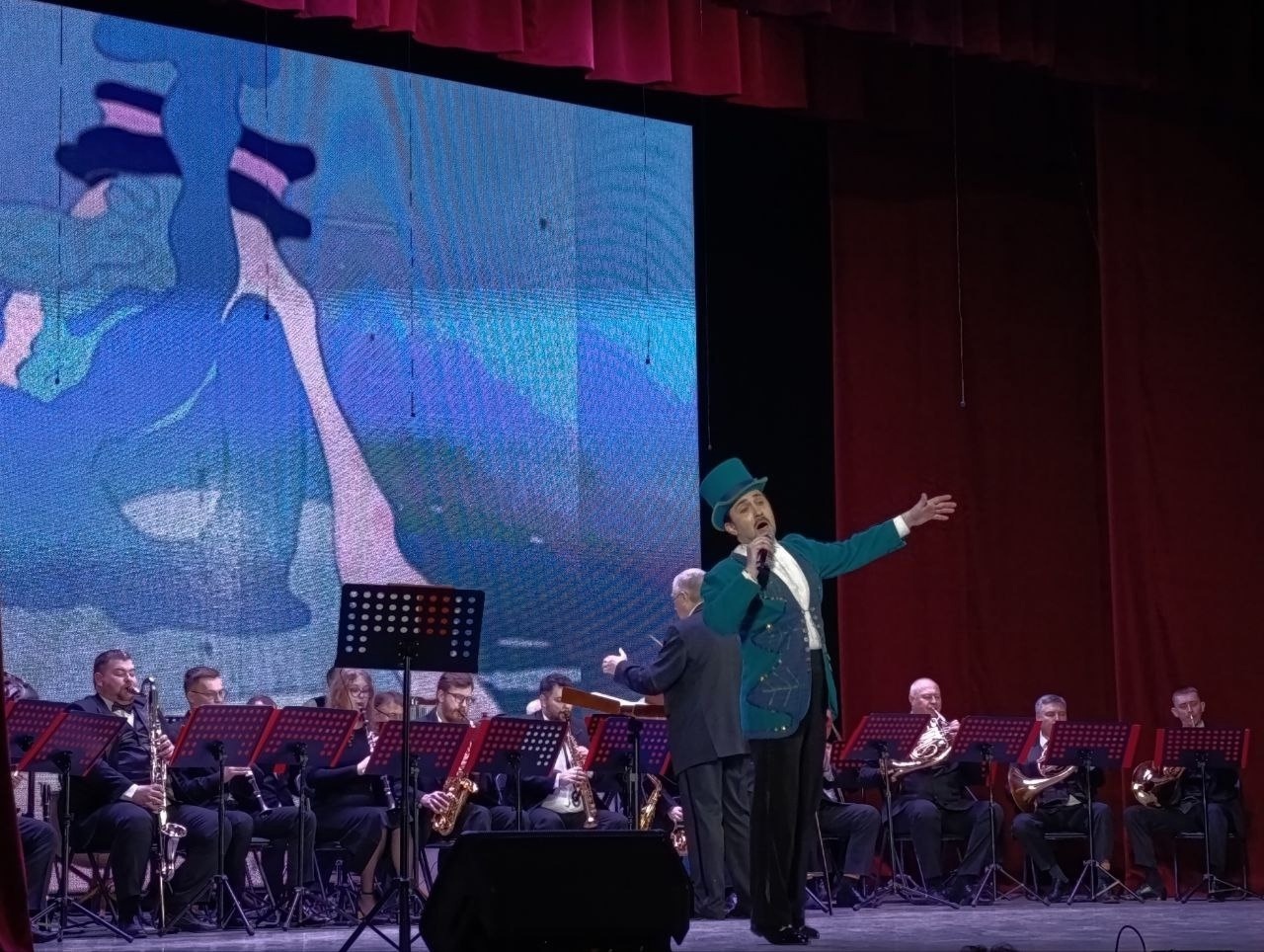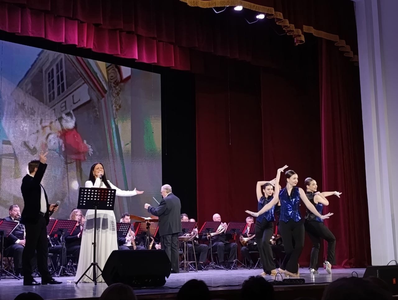 Духовой оркестр Коломенской филармонии под руководством Главного дирижёра, заслуженного работника культуры РФ Александра Пономарёва, исполнил сочинения выдающихся композиторов Исаака Осиповича и Максима Исааковича Дунаевских. 2025 год знаменателен для этой музыкальной семьи: 125-летие со дня рождения Исаака Осиповича и 80-летие Максима Исааковича. Концертная программа дала возможность зрителям насладиться уникальным песенным наследием отца и сына в ярких оркестровых аранжировках.
