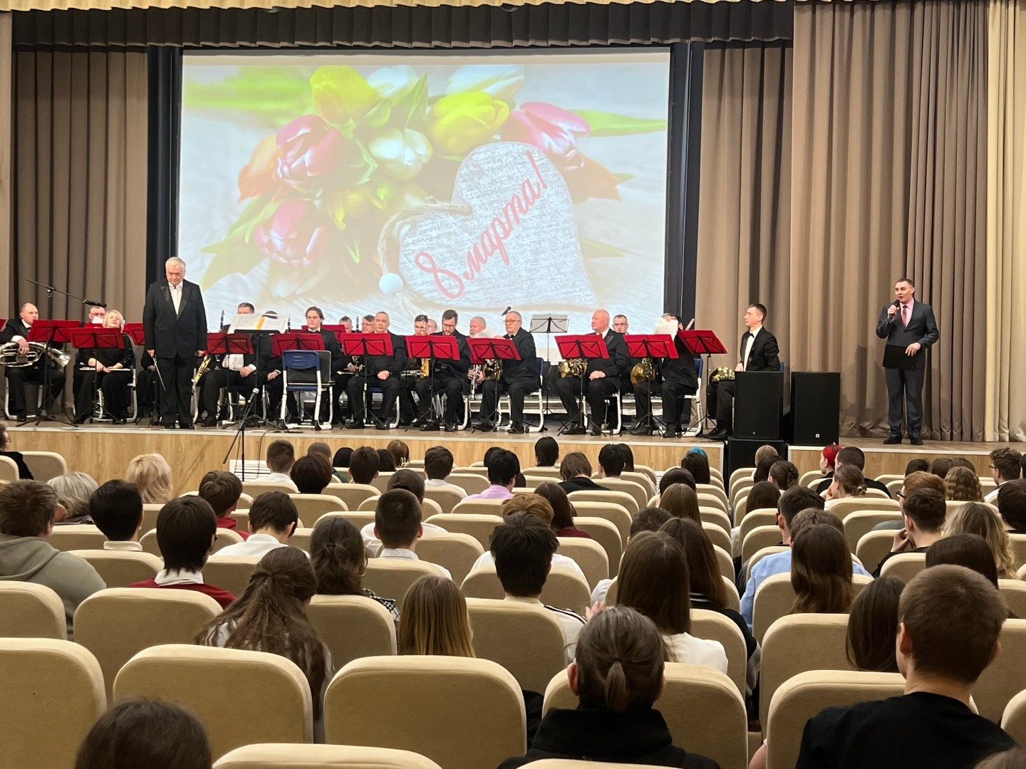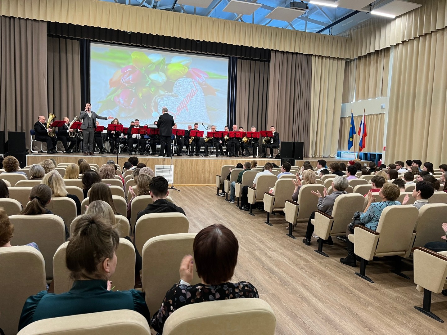 6 марта Духовой оркестр Коломенская филармонии, главный дирижёр заслуженный работник культуры Российской Федерации Александр Пономарёв, выступил с праздничным концертом для педагогического коллектива и учащихся МБОУ СОШ 21. Солисты оркестра Александр Дорогов, Сергей Туралетов,  Владимир Дмитриев и Елизавета Угодникова.  Автор сценария и ведущий Олег Фомушкин. Зрители тепло принимали каждое произведение.  В зале царила атмосфера весны, любви и вдохновения !