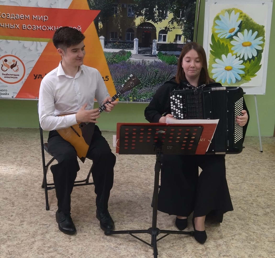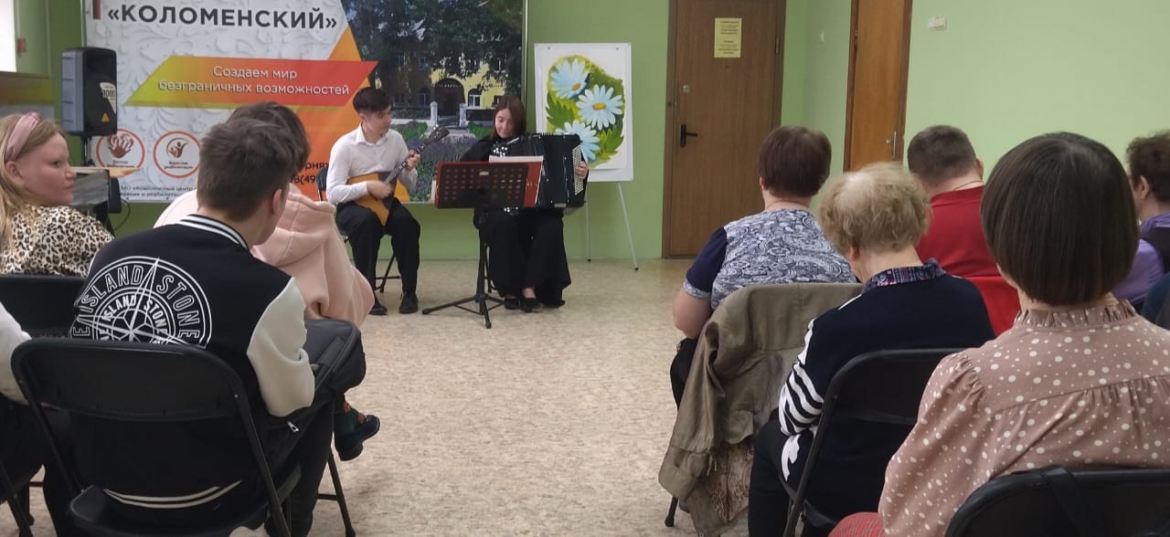 17 апреля артисты Коломенской филармонии Мария Павлова и Виктор Новиков выступили с концертными номерами для подопечных центра реабилитации для взрослых. Мероприятие было посвящено Светлому празднику Пасхи.