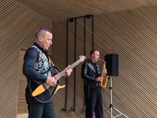 артисты Коломенской филармонии Юрий Иванов и Егор Митрофанов. Этим мероприятием Коломенская филармония завершает цикл летних концертов под открытым небом, в рамках губернаторской программы «Лето в Подмосковье».