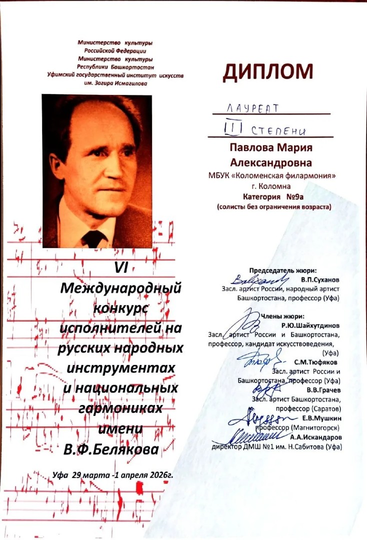 И мы с гордостью сообщаем, что артистка Коломенской филармонии Мария Павлова не просто приняла участие, но и стала обладательницей Диплома III степени в номинации среди профессионалов!