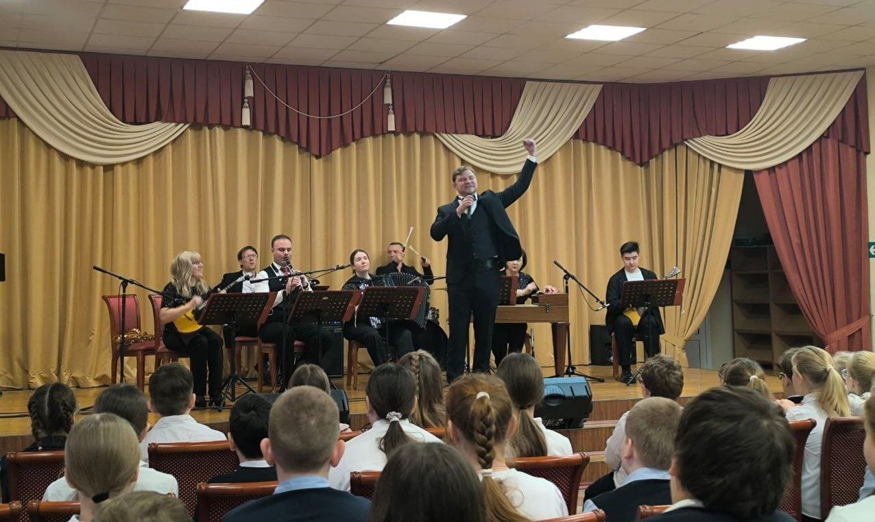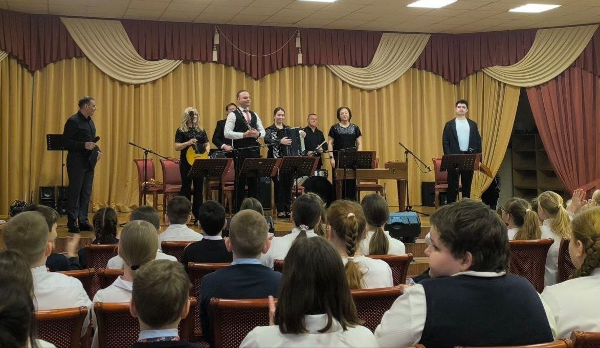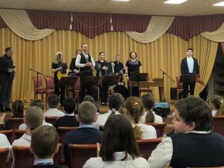 Сегодня в МБОУ СОШ № 15 (здание 1) для обучающихся 3х и 4х классов педагог-библиотекарь Кривощапова И.Н. совместно с КОЛОМЕНСКОЙ ФИЛАРМОНИЕЙ (директор Зубенина Н.А.) ансамбль народных инструментов «МУЗЫКАЛЬНЫЙ ЭКСПРЕСС», худож.рук. Фомушкин О.В. и солисты, лауреаты всероссийских и международных конкурсов, Алена Лунич и Владимир Лютиков провели музыкально-патриотическое мероприятие посвященное Году народов России и приуроченное к празднованию Дню защитника Отечества «От героев былых времен».