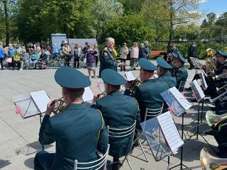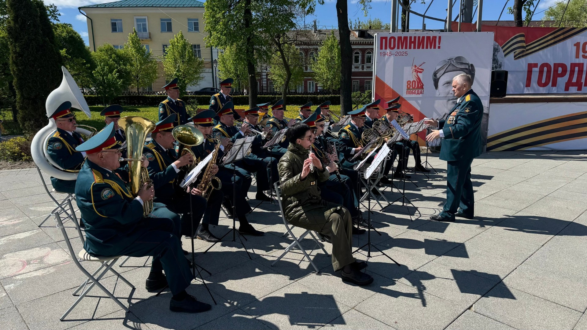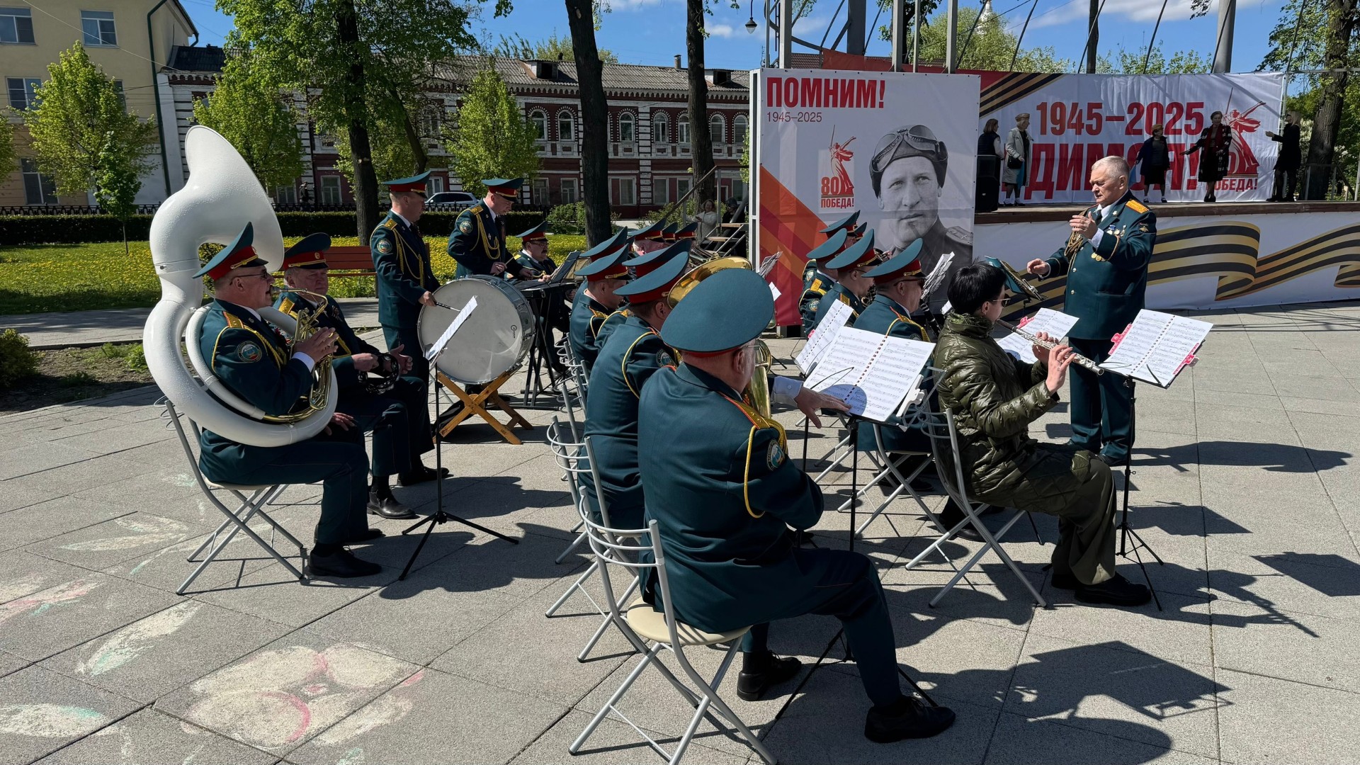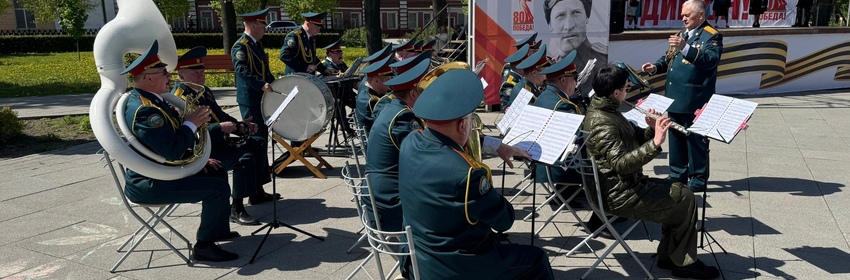 6 мая в сквере им. В.А. Зайцева состоялось праздничное мероприятие "Одна на всех Великая Победа". Торжественные звуки Духового оркестра украсили это яркое событие. Главный дирижер Духового оркестра заслуженные работник культуры РФ Александр Пономарёв. Гостями праздника стали участники Губернаторской программы "Активное долголетие".