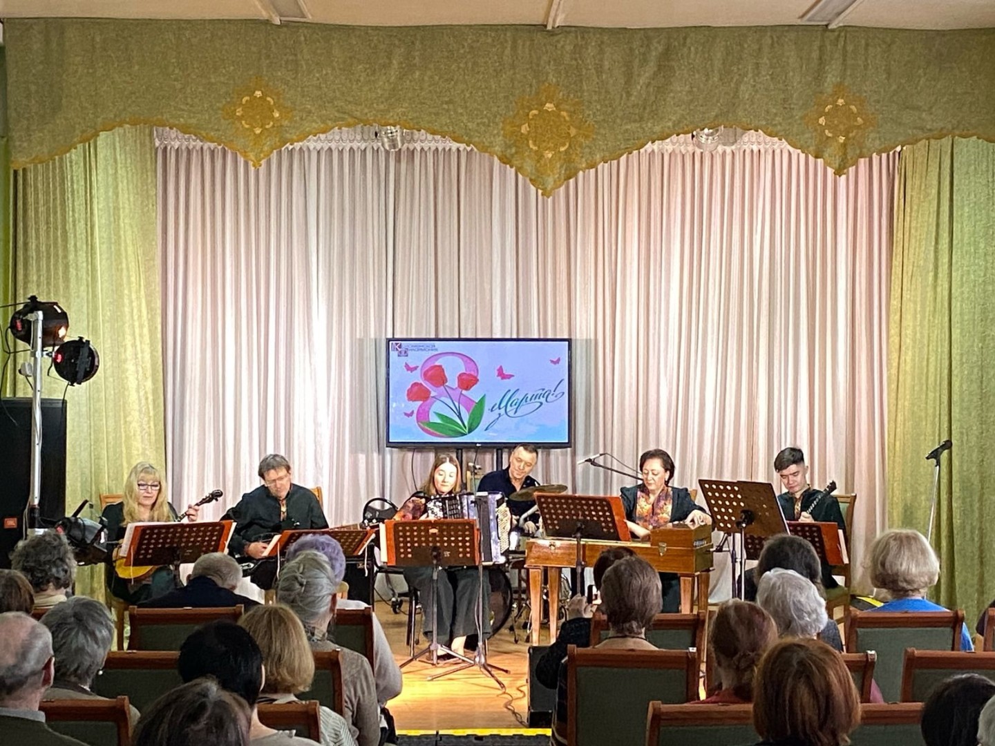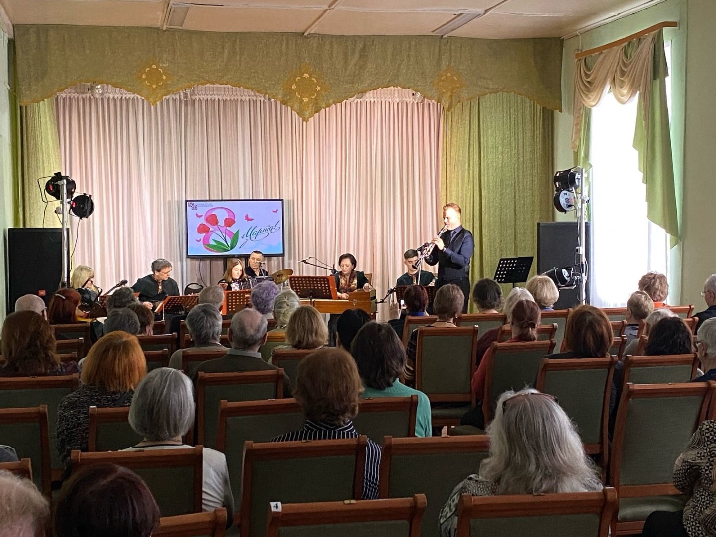 6 марта в рамках Губернаторской программы "Активное долголетие" состоялся концерт "Весь мир начинается с женщины". Концертную программу представил ансамбль народных инструментов "Музыкальный экспресс", руководитель Ольга Лоткова. Солисты Егор Митрофанов и Алёна Лунич. Автор сценария и ведущий Олег Фомушкин.
