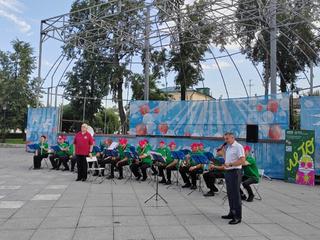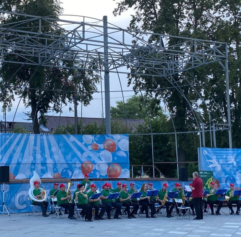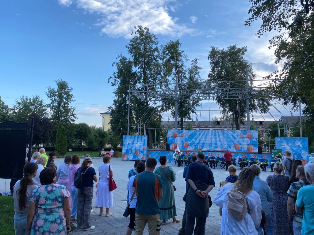 16 июля центром притяжения в сквере им. В.А. Зайцева стала уютная сцена, а всё потому, что для гостей сквера выступил Духовой оркестр Коломенской филармонии, Главный дирижёр заслуженный работник культуры РФ Александр Пономарёв. Солист оркестра ученик академии хорового искусства имени В.С. Попова Платон Дегтярёв.
